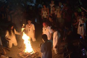 In een cirkel om een vuur staan ongeveer tien Maya’s: mannen en vrouwen van verschillende leeftijden. Ze dragen witte pakken met kleurige borduursels. Sommigen hebben een gekleurde doek om hun hoofd. De ca’zique’, de leider, is een kleine, goedlachse man met een rond gezicht en een grote microfoon in zijn hand. Hij zegt gebeden in het Nahuatl en gooit wierook in het vuur.